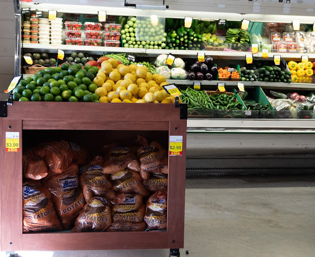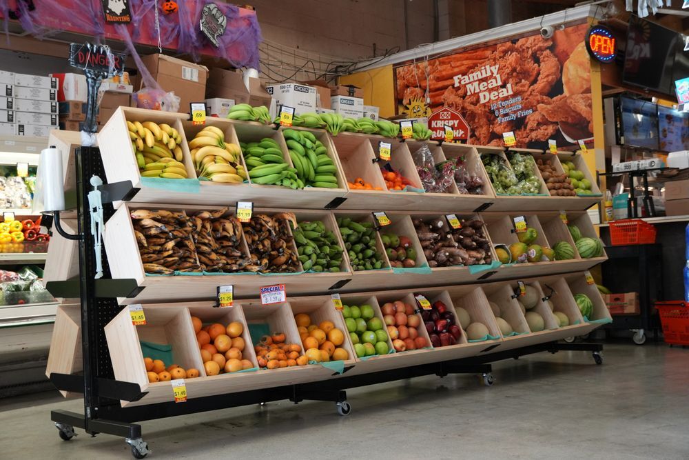 - The Classic Wood Orchard Display Bin With 4 Shelves & Casters (36″W × 36″H × 36″D) instantly added warmth and mobility to Super Save’s produce section. These rustic wood bins let staff easily reconfigure displays for promotions or seasonal changes while keeping fresh items front and center.