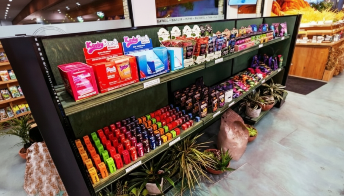 - Repurpose bakery-style fixtures for cannabis displays. The curved bakery end cap is ideal for edibles and seasonal highlights.