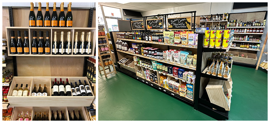 Beyond signage, Yankee Peddler Market implemented a combination of metal and wood shelving systems to strengthen product presentation and create a warm, market-style environment that aligns with its fresh and local brand promise.